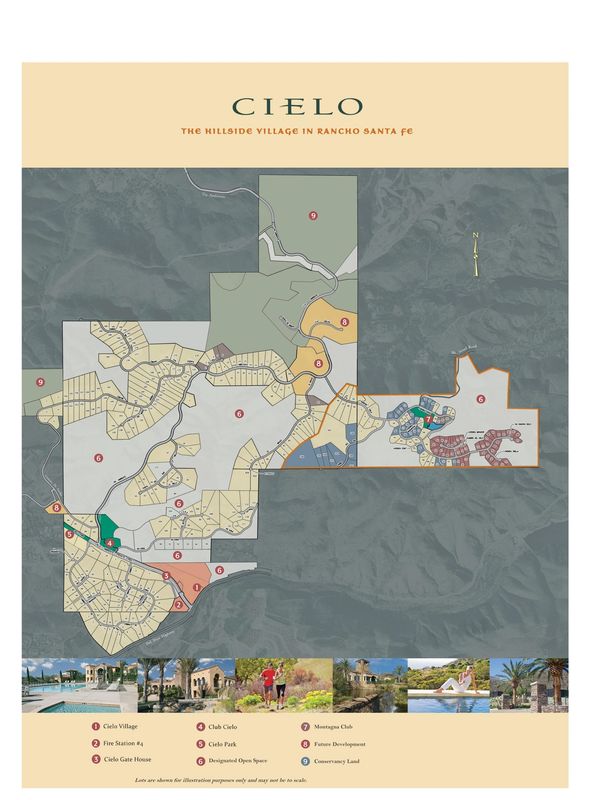 Cielo is aptly named, meaning "sky" or "heavens" in Spanish, as this rarified hillside village commands mesmerizing panoramic views of the Rancho Santa Fe Valley, mountains and Pacific Ocean. Above Rancho Santa Fe in San Diego County, Cielo's elevation provides a unique perspective of the coastline for miles in either direction. On a clear day, one can see all the way to Mexico and Catalina Island. The community is comprise of around 300 multi-million dollar homes, each with its own distinct architectural style befitting its dramatic location. Cielo is truly a village in the sky, offering residents and their guests a front row seat to some of the most stunning sunsets California has to offer.